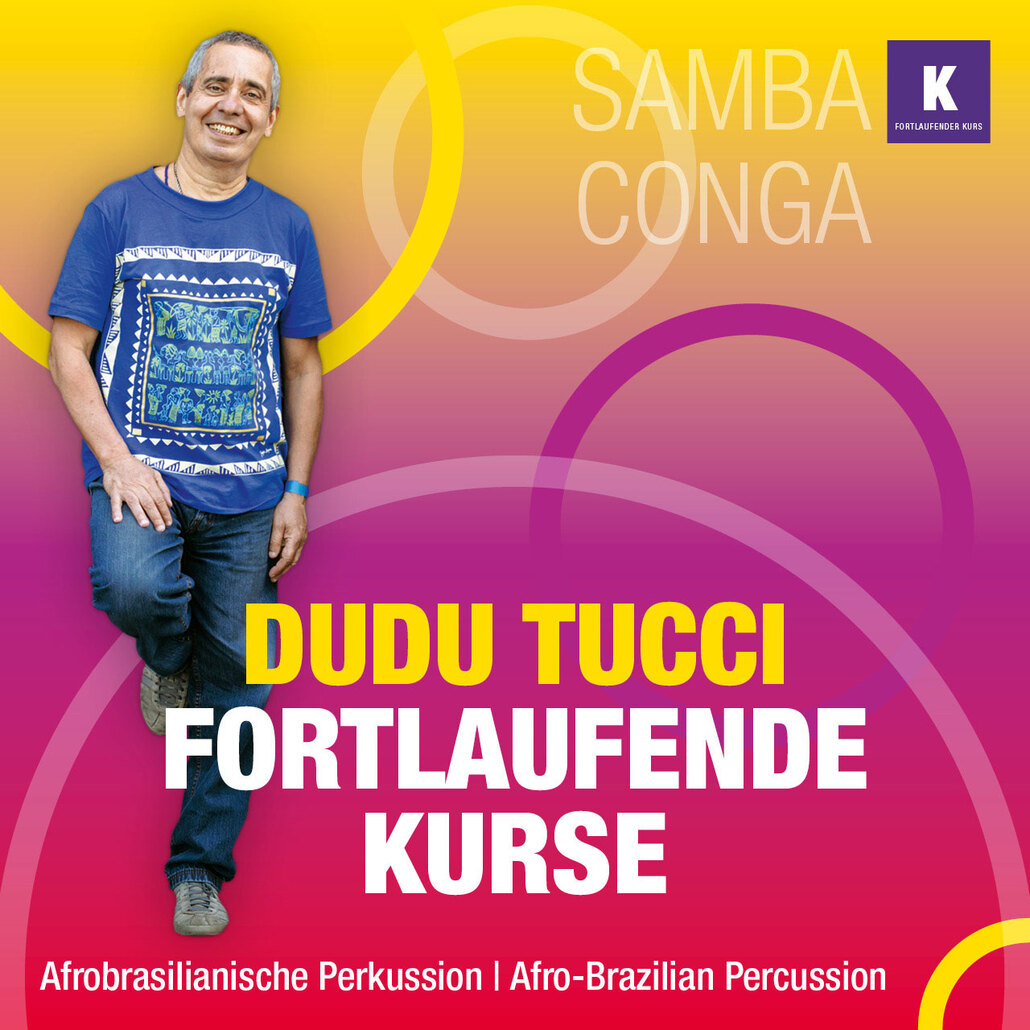 The PAC is Dudu Tucci’s creative base as a teacher, composer and artist of Afro-Brazilian percussion. Throughout the year, you’ll find courses in samba reggae, bateria, maracatú and many other Brazilian styles. We play on a wide range of instruments – from batucada instruments and timbals to congas, pandeiro and berimbau – in workshops, seminars, group sessions and one-to-one lessons. A fully equipped recording studio is also available for rehearsals and recording.