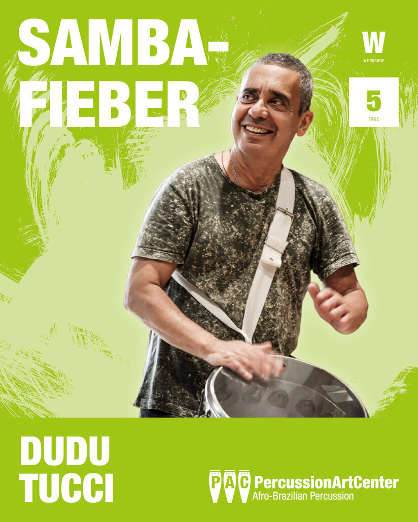 Dudu shares his own compositions, fresh arrangements, and current influences from Brazil. Perfect if you want to come with your whole group or section, but just as valuable for individual players. Beginners gain a solid foundation, experienced sambistas can re fine their playing, everyone leaves with new ideas and inspiration – Dudu makes sure everyone is challenged in just the right way.